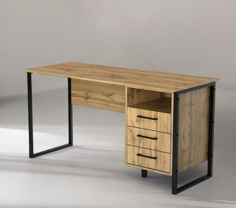 Стол письменный Tobi Sho LOFT Gold СПЛГ/3 прямой с ящиками, столешница 36 мм, 1600х600х765 Дуб аппалачи