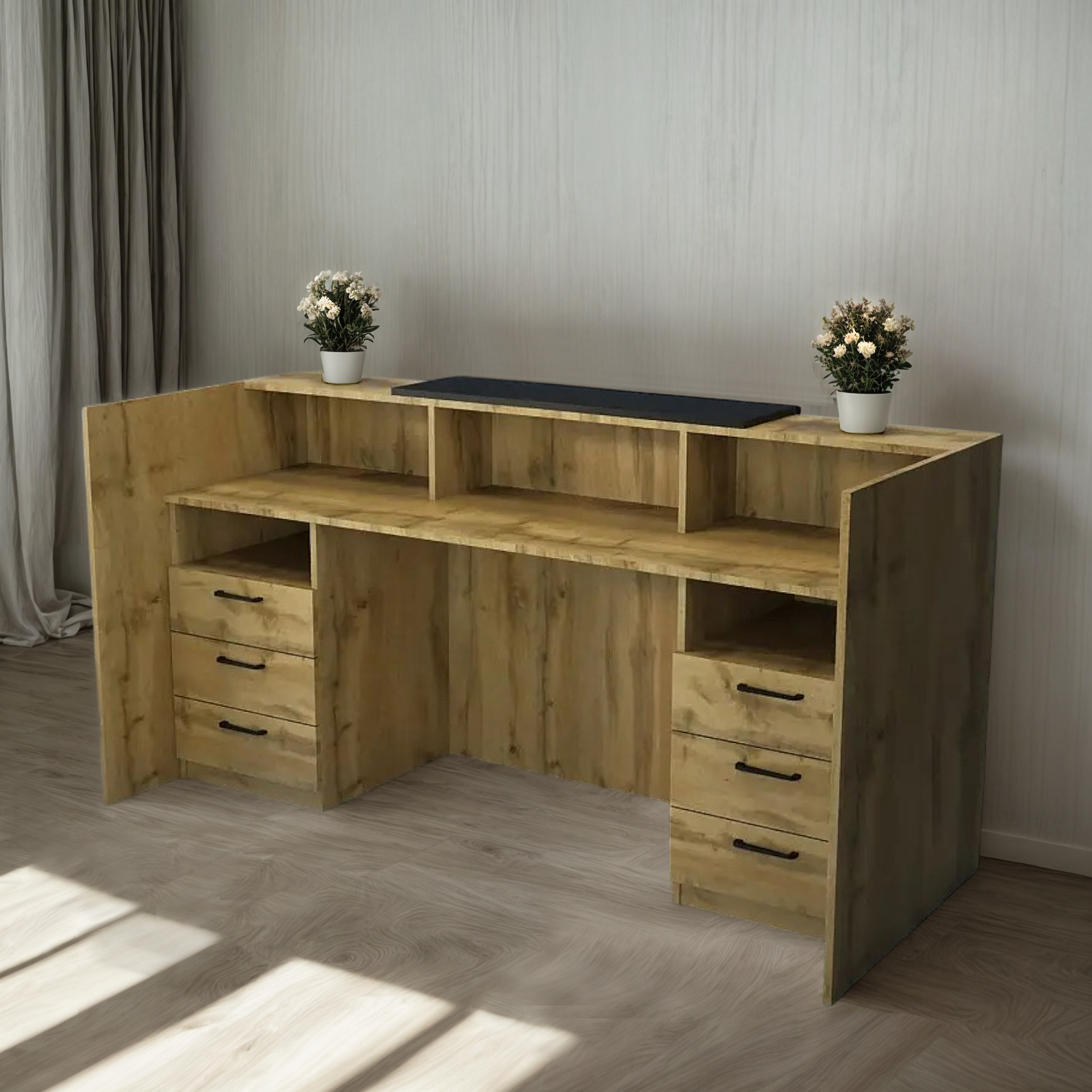 Стойка администратора Tobi Sho Ресепшн/1 для офиса, салона с ящиками, 2000х800х1000 Дуб аппалачи/Черный