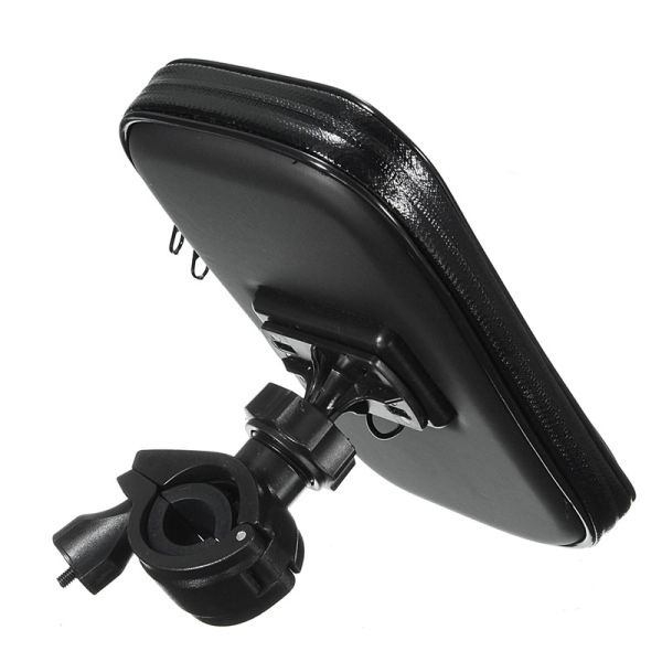 Чехол - держатель телефона подходит для устройств с диагональю экрана до 6 дюймов. Держатель телефона выполнен из плотного водонепроницаемого материала с водостойкой застёжкой типа “молния”. Передняя часть выполнена прозрачной, через неё можно управлять вставленным в него гаджетом. Такой держатель надёжно сохранит ваше устройство от попадания дождя и брызг, пыли, грязи. Однако, не следует допускать погружения чехла в воду.