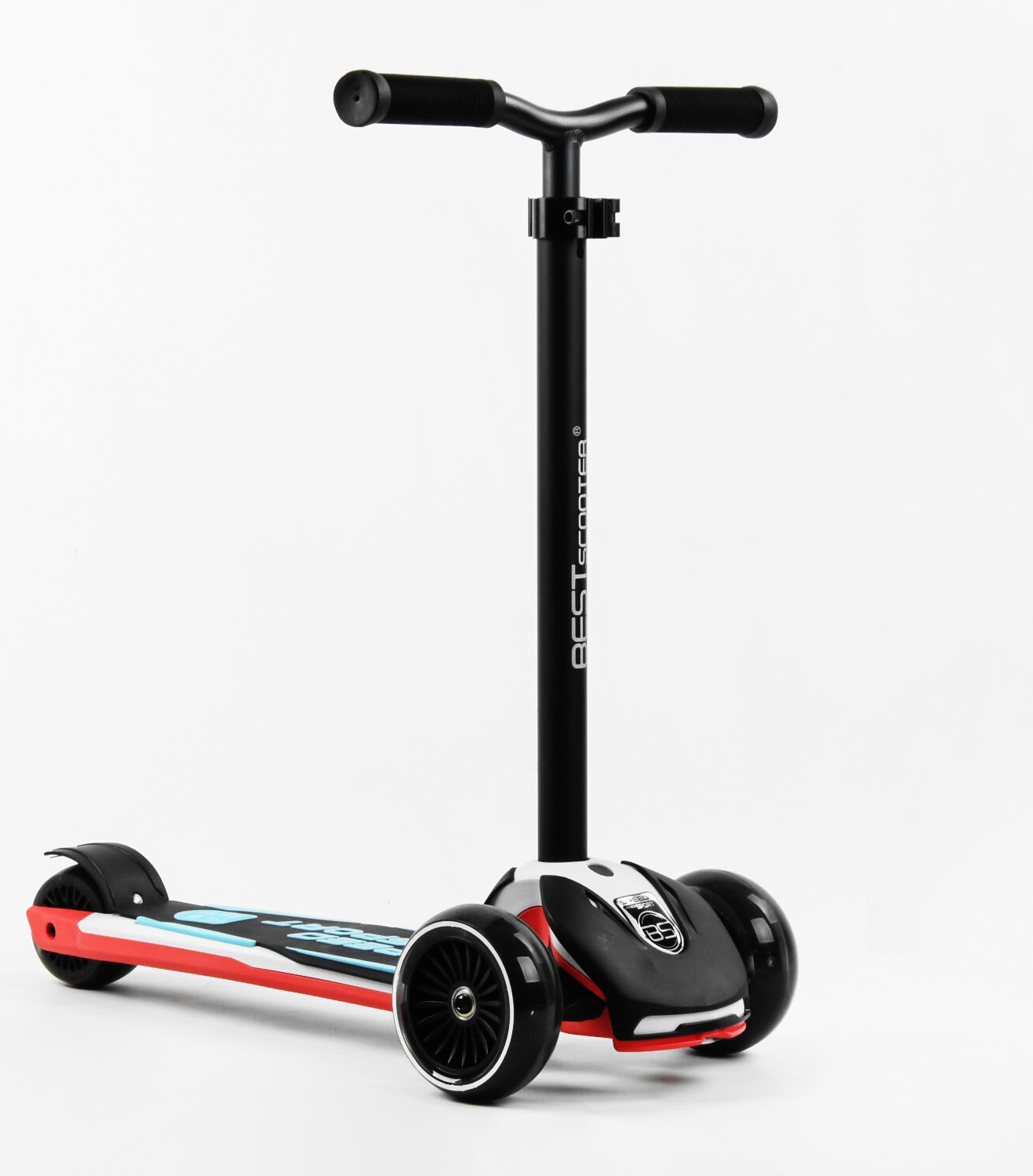 Самокат трехколесный Best Scooter складной алюминиевый руль, 3 колеса PU со светом Red/Black (102026)