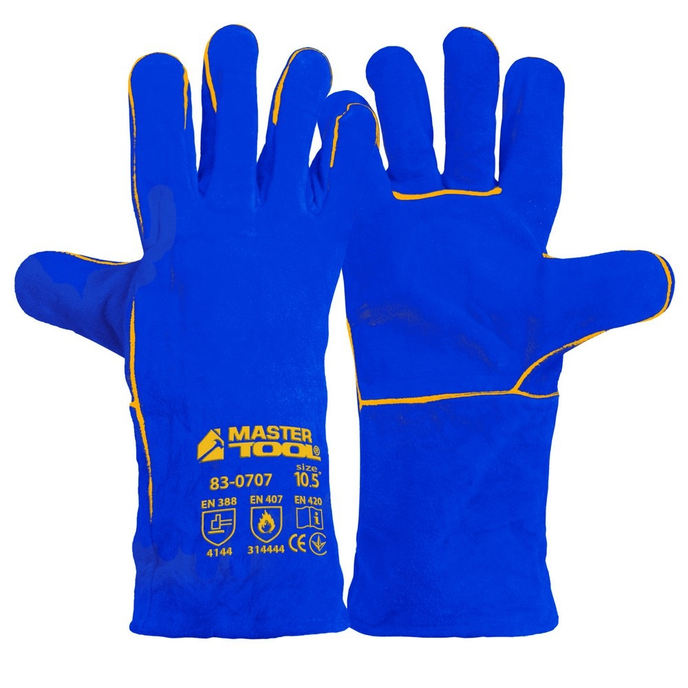 Перчатки краги сварщика MASTERTOOL замшевые, 10,5" 350 мм, подвес. Blue (83-0707)