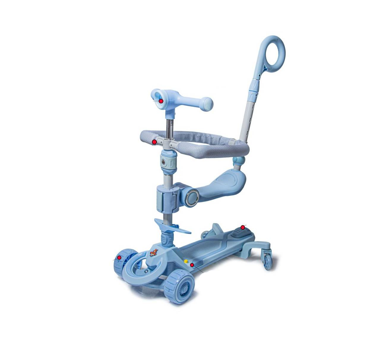 - Сможете использовать его в различных режимах, начиная с первых шагов и до момента, когда ваш ребенок будет уверенно кататься на самокате.