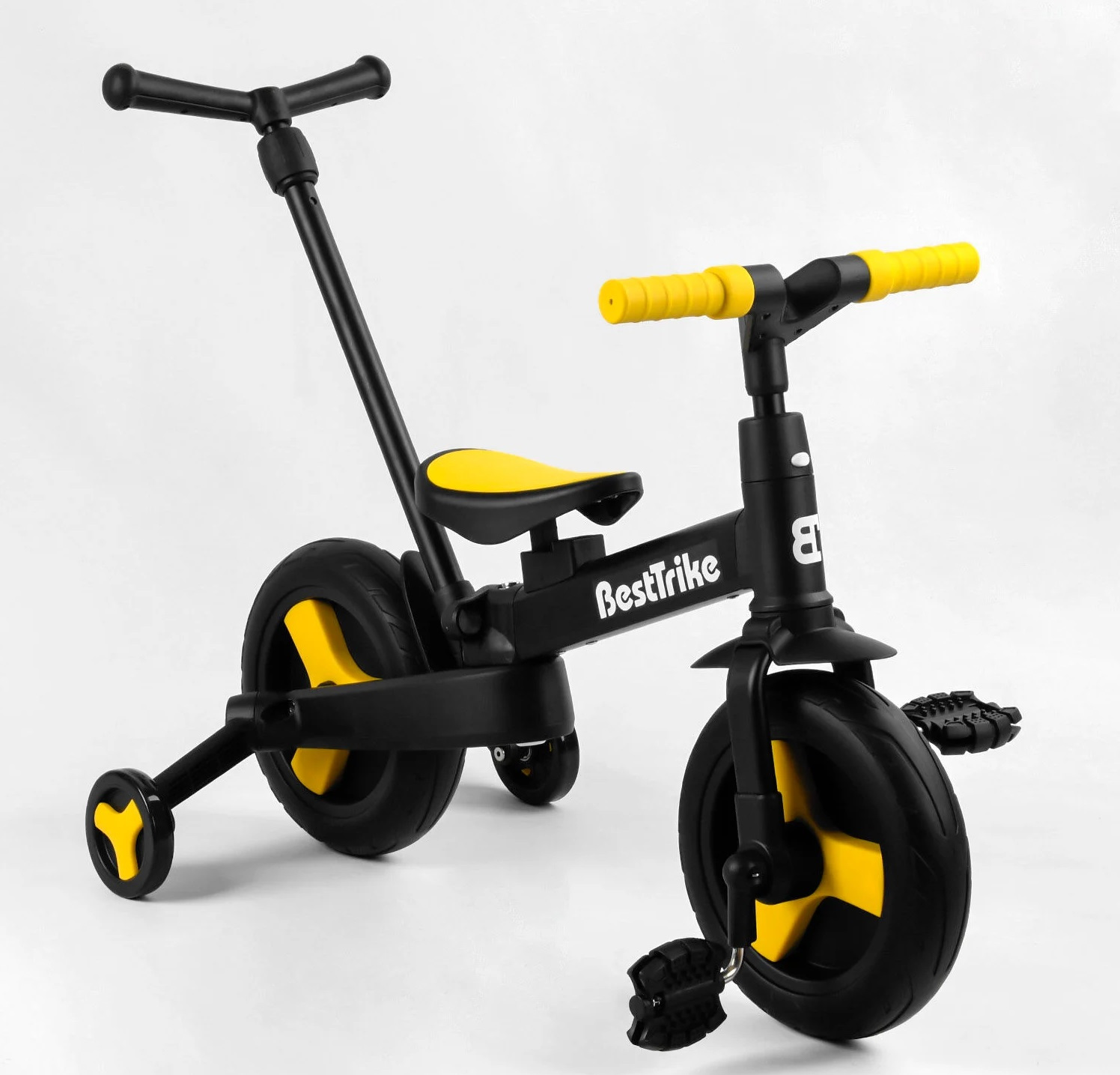 Велосипед-трансформер детский 10" Best Trike родительская ручка, съемные педали. Black (105224)
