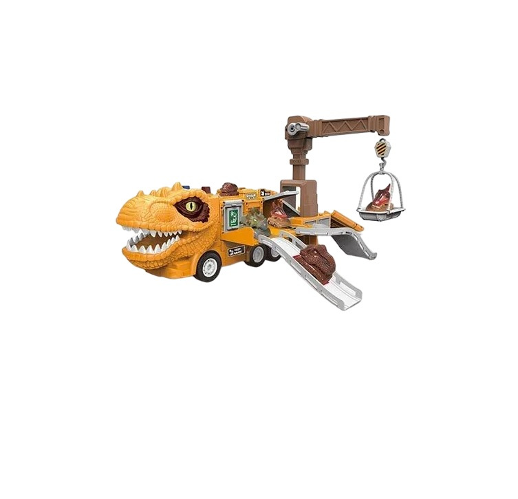 Отправьтесь в приключения в доисторические времена с этим набором машинок, стилизованным под динозавров! Динозавр-грузовик разлагается в небольшой трек и парковку для меньших машинок, а также прицеп с подъемным краном, механизм которого может поднимать машинки и переносить их с места на место. Также грузовик имеет подсветку мигалкой и играет 10 веселых мелодий. Этот набор компактен и удобен для тех, кто не любит беспорядка, ведь все машинки могут храниться прямо в своих "гаражах" внутри большой машины. Вместе с этим треком ваш ребенок разовьет свои когнитивные способности и мелкую моторику рук, а также может заинтересоваться древней историей нашего мира и археологией.