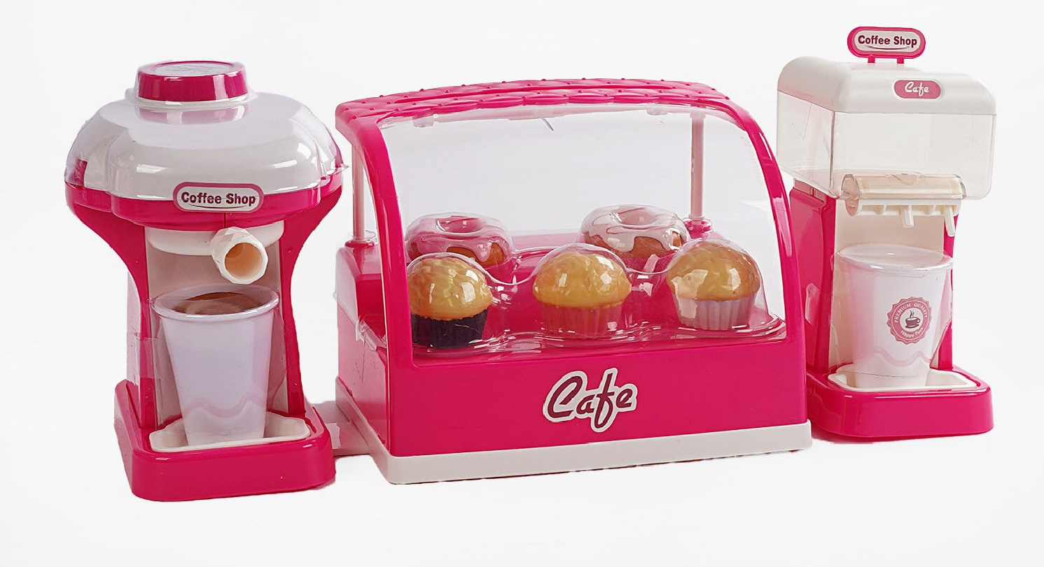 Игрушечная кофейня – это замечательное развлечение, которое будет полезно для развития социальных навыков и творческой игры детей. Игрушка обладает ярким и привлекательным дизайном, имитирующим атмосферу уютного кафе. Состоит из вододозатора, кофемашины, витрины со сладостями.