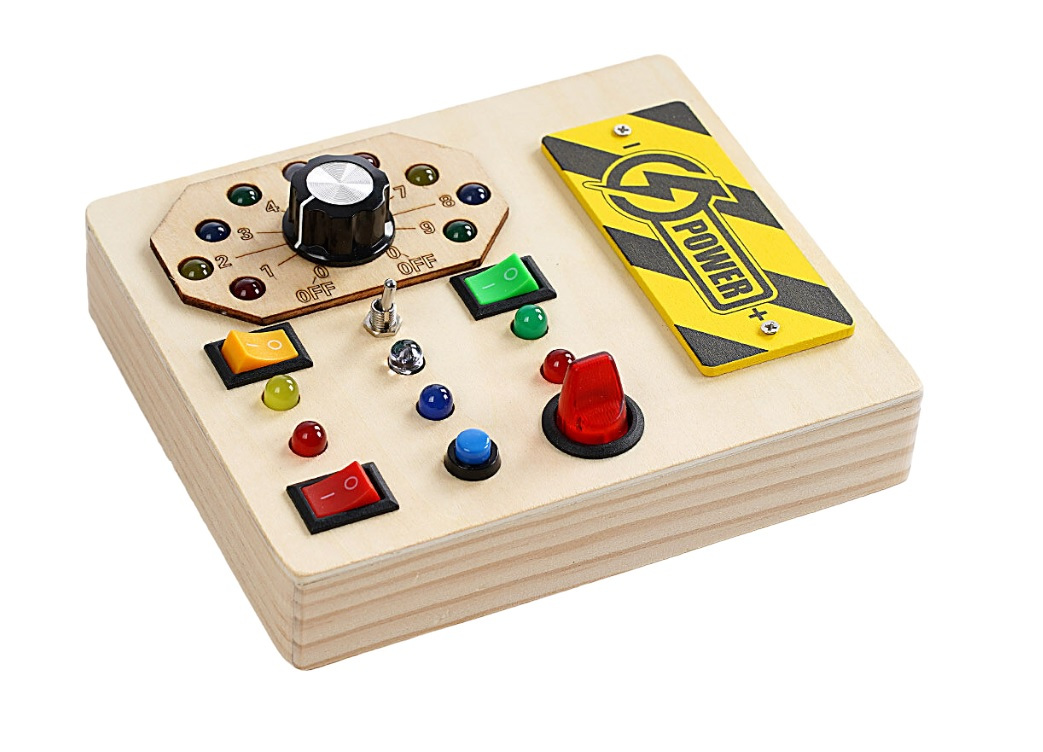 Развивающая доска для самых маленьких, которая познакомит малышей со светом. Бизиборд включает в себя множество маленьких лампочек, которые нужно включить с помощью переключателей. Цветная подсветка легко привлечет малыша и поможет развить мелкую моторику ручек. Бизиборд выполнен из натурального дерева и имеет компактные размеры.