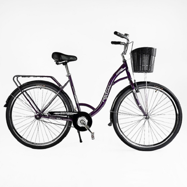 Велосипед городской 28" Corso Fortuna, односкоростной, стальная рама 20", корзина, багажник. Фиолетовый (162954)