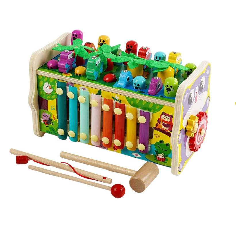 - в наборе есть 2 молоточка, палочка для игры на ксилофоне и магнитная удочка;