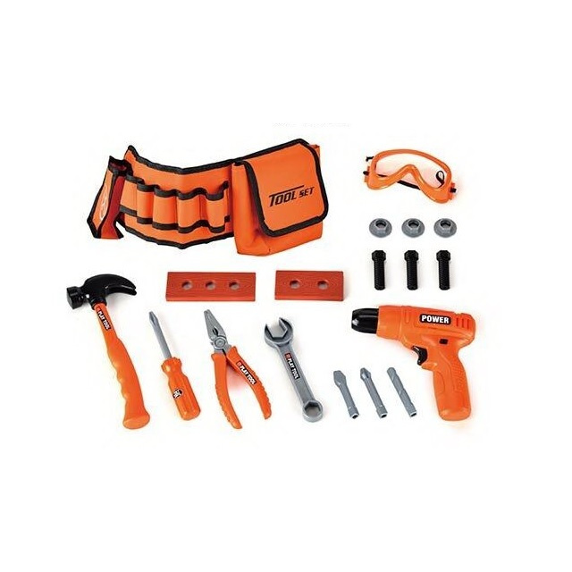 Игрушечный набор инструментов для опытного мастера, который любит что-то строить и чинить. Он включает 10 различных игровых элементов, среди которых есть шуруповерты на батарейках и тренировочные бруски. Для удобства мальчика находится пояс для ручного инструмента. Юный мастер будет доволен!