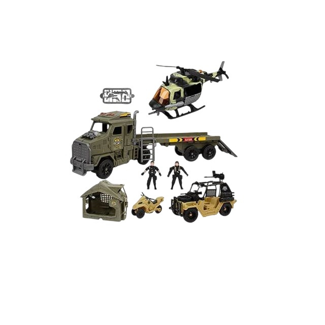 Игровой набор военной техники, трейлер, вертолет, машина. Разноцветный (164004)