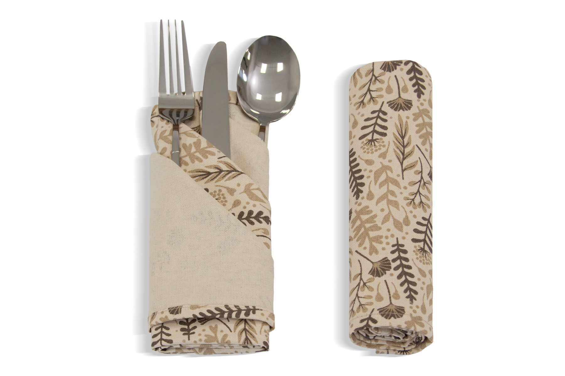 Серветки сервірувальні на стіл Флер-2 (40 × 40 см, 2 шт., бавовна, трави, бежевий) IMI