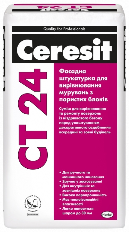 Описание Штукатурка для бетонных оснований CERESIT CT 24 25 кг