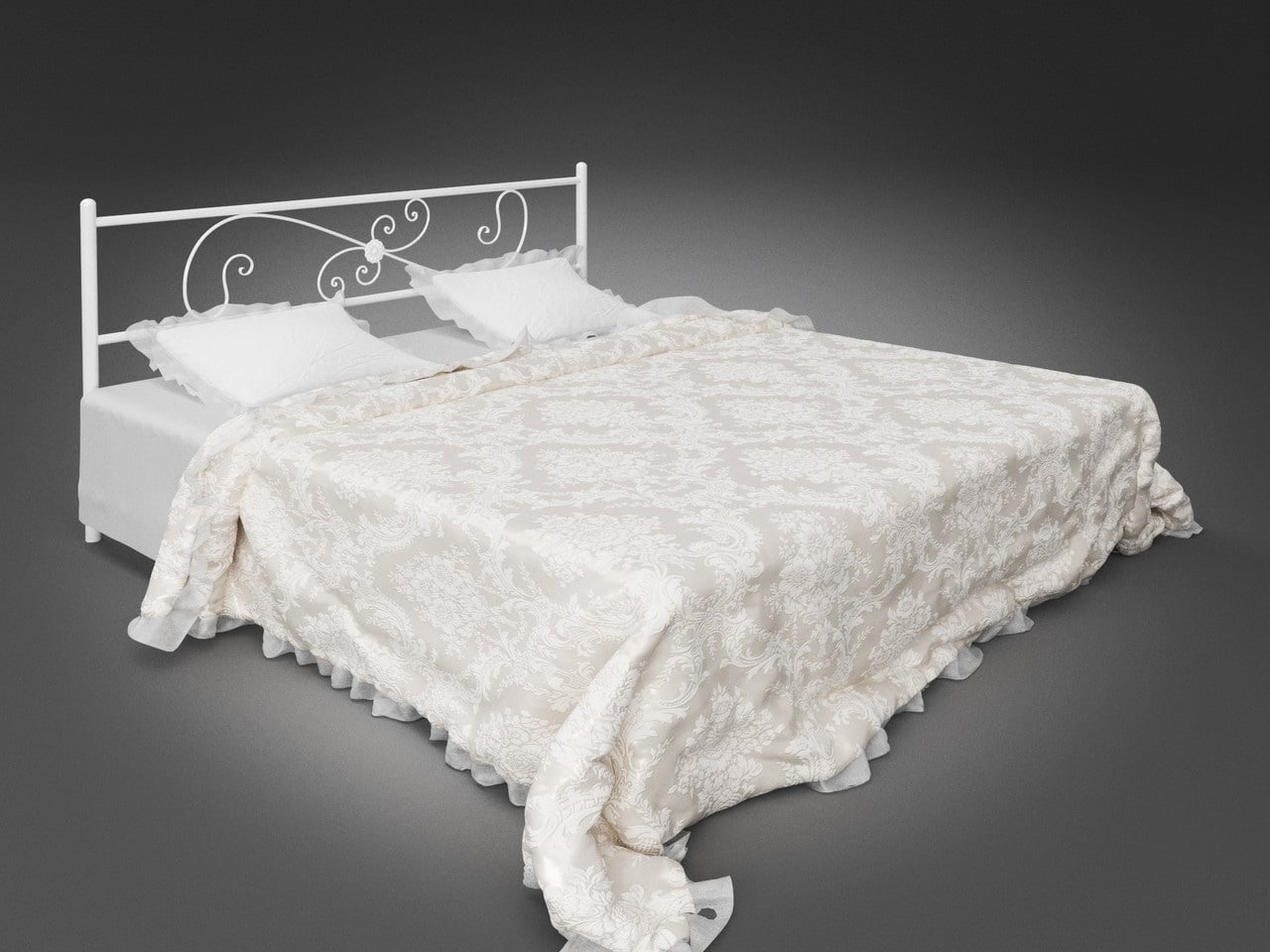 Характеристики товара Ліжко Хризантема Tenero металева на ніжках з прямокутним кованим узголів'ям