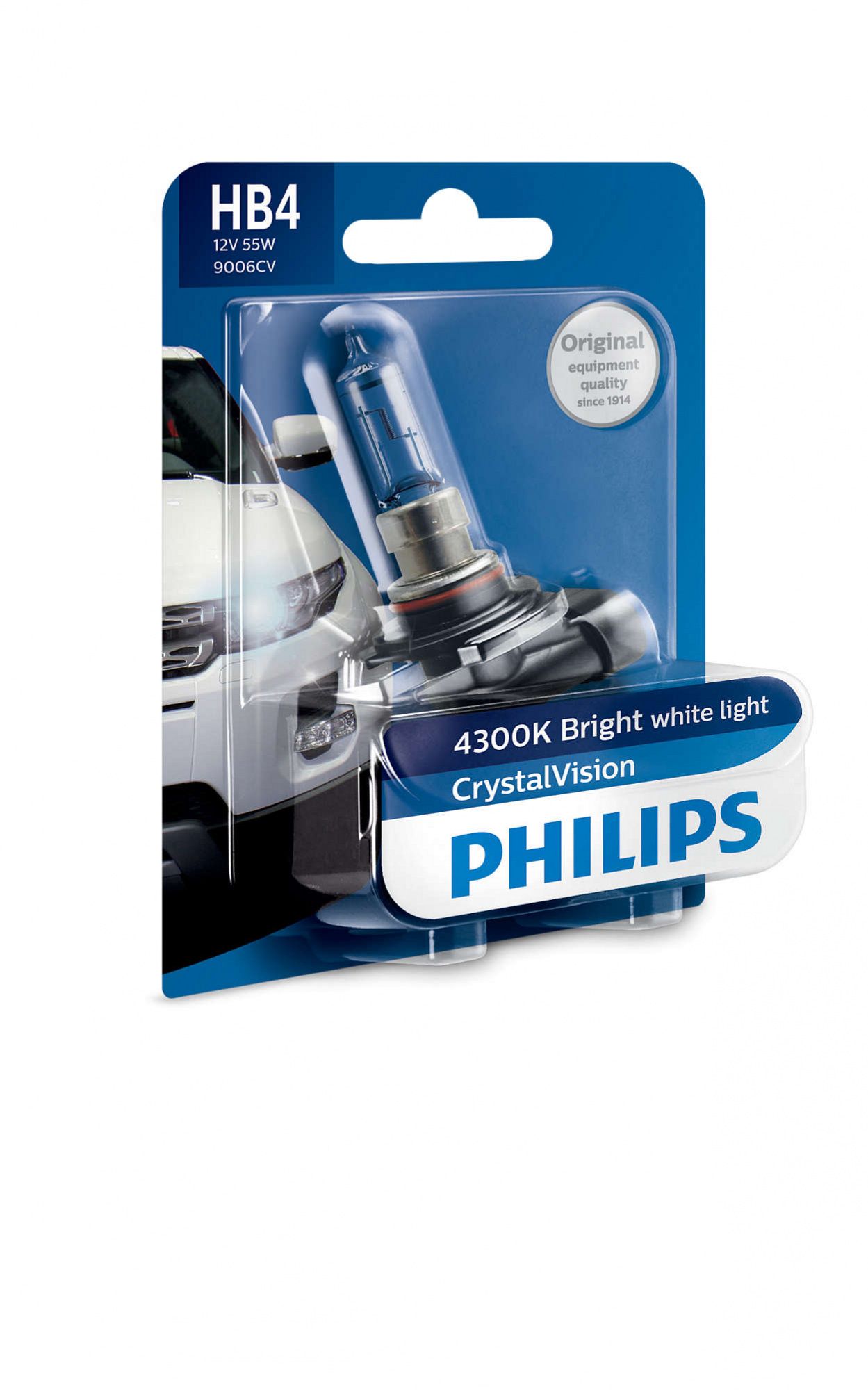 Мы предлагаем широкий ассортимент ламп автомобильного освещения. У нас Вы можете купить автолампу Philips со 100% гарантией оригинальности и по приемлимым ценам. Лампы Philips по праву занимают одно из лидирующих мест в мире. Их качество обеспечивает идеальное освещение дорожного полотна, высокую продуктивность и долговечность. Если Вы решили заменить стандартные лампы в своем авто или байке, лампы Philips - оптимальный и доступный вариант. Автолампа PHILIPS 9006CVB1 HB4 55W 12V P22d CrystalVision - галогенная лампа головного освещения из серии Cristal Vision. Для них характерен ярко-белый свет. Применение: дальний свет, передний противотуманный свет, ближний свет. Характеристики: Мощность - 55 ВТ, Напряжение - 12 В, Цоколь - P22d