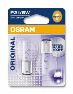 Описание Автолампа ук. OSRAM 7511-02B P21W 24V BA15s 2X10 Blister