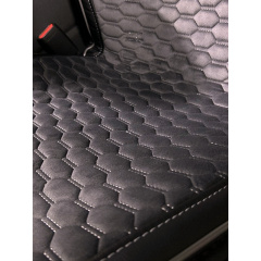 Слои сшиваются на качественном европейском оборудовании и образуют прочную однородную структуру. В результате сшивания на поверхности появляется красивый узор в виде рельефных полосок. По краям накидки окантованы полосой экокожи однотонного или контрастного цвета. Комфорт для водителя и пассажиров