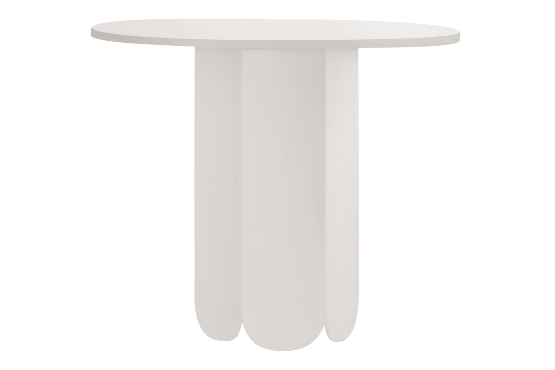 Обідній стіл LinenVault має круглу стільницю та основу з фігурними панелями. Завдяки розмірам 90 × 90 × 75 см, його можна розмістити у невеликій кухні, їдальні або зоні для сніданків.