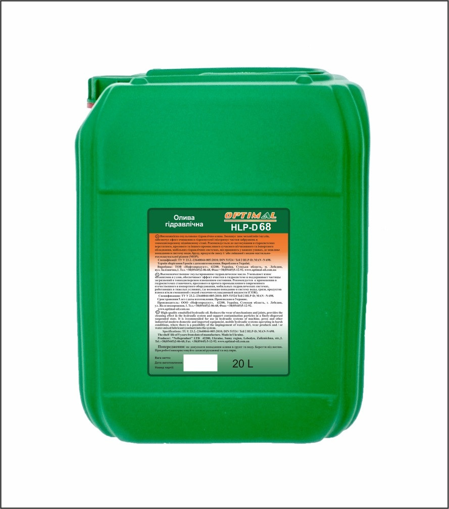 Гидравлическое масло HLP-D 68 – высококачественное эмульгированное, гидравлическое масло, уменьшающие износ механизмов и узлов, обеспечивающие эффект очистки в гидросистеме и поддерживающие частицы загрязнений в тонкодисперсном взвешенном состоянии. Масло оказывает комбинирующее детергирующие, смачивающие и диспергирующие свойства. Масло HLP-D 68 рекомендуется к применению в гидросистемах станочного, прессового и прочего промышленного современного отечественного и импортного оборудования, мобильных гидравлических системах, работающих в тяжелых условиях, где возможно попадание в систему воды, грязи, продуктов износа и/или смешанной с водой смазочно-охлаждающей жидкости (СОЖ). При этом небольшое количество воды поглощается за счет эмульгирующей способности, без потери работоспособности. Спецификации: ТУ У 23640044.001-2001 DIN 51524/Teil 2 HLP-D(за исключением показателя эмульгирующие свойства ASTM D 1401, этот показатель нормируется согласно DIN для масел уровня HLP и не применим для масел уровня HLPD) MAN –N 698
