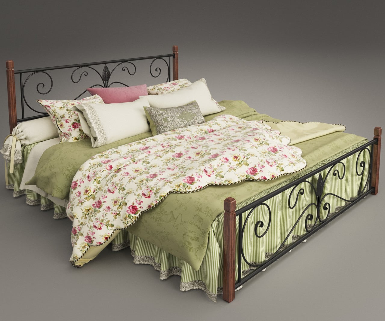 Двоспальне ліжко Крокус Tenero з металу на дерев'яних ніжках для дому номерів готелів хотел 180х190
