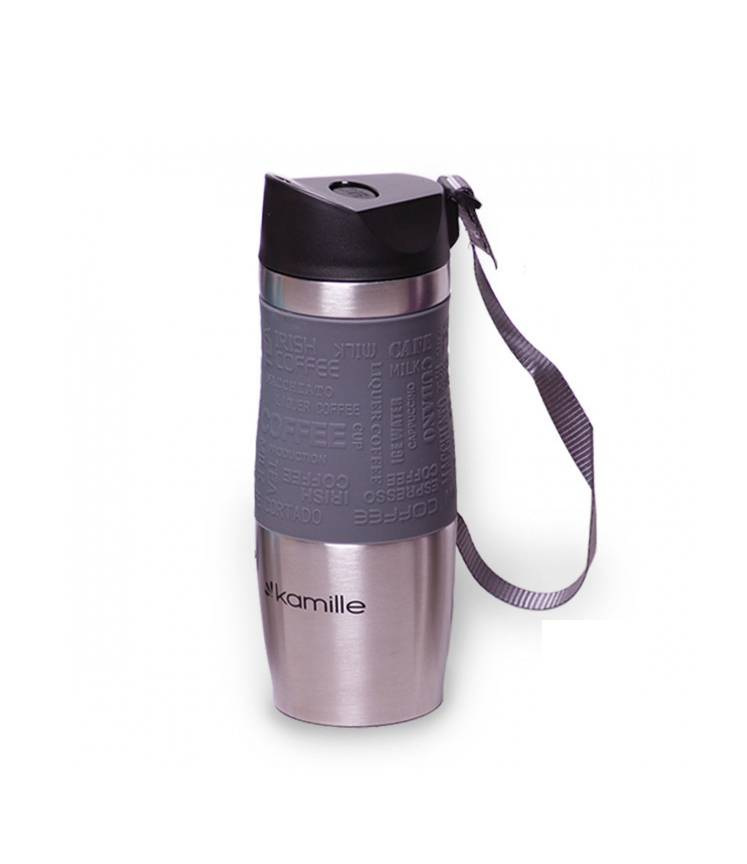 Термокружка Kamille 380 мл из нержавеющей стали Серебристая / Серая КМ-2052
