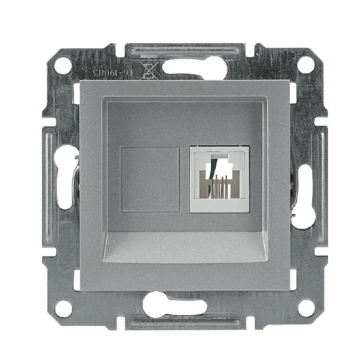 Розетка телефонная без рамки алюминий Asfora, EPH4100161