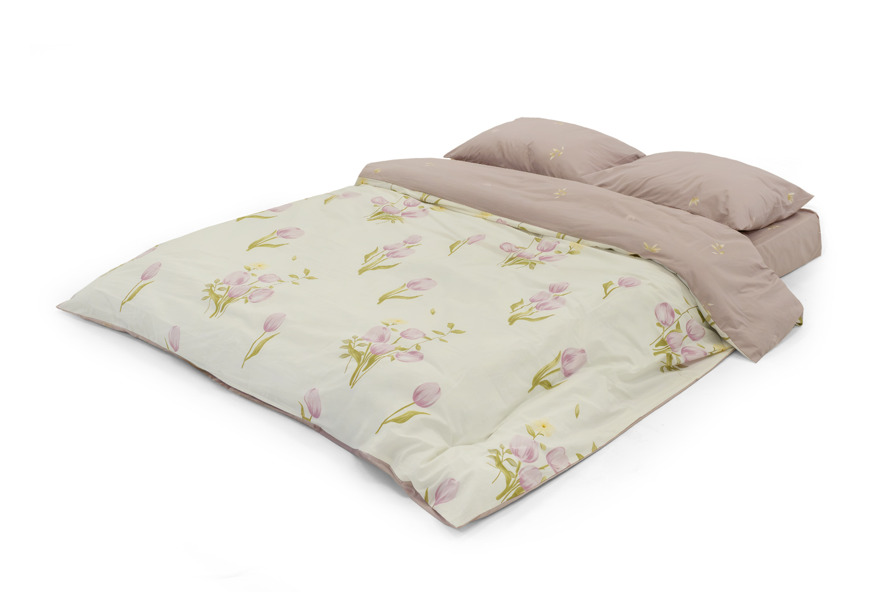 Описание Комплект постільної білизни Юнона-2 (двоспальний, ранфорс, наволочки: 50х70 см 2 шт, тюльпани, пудра) IMI