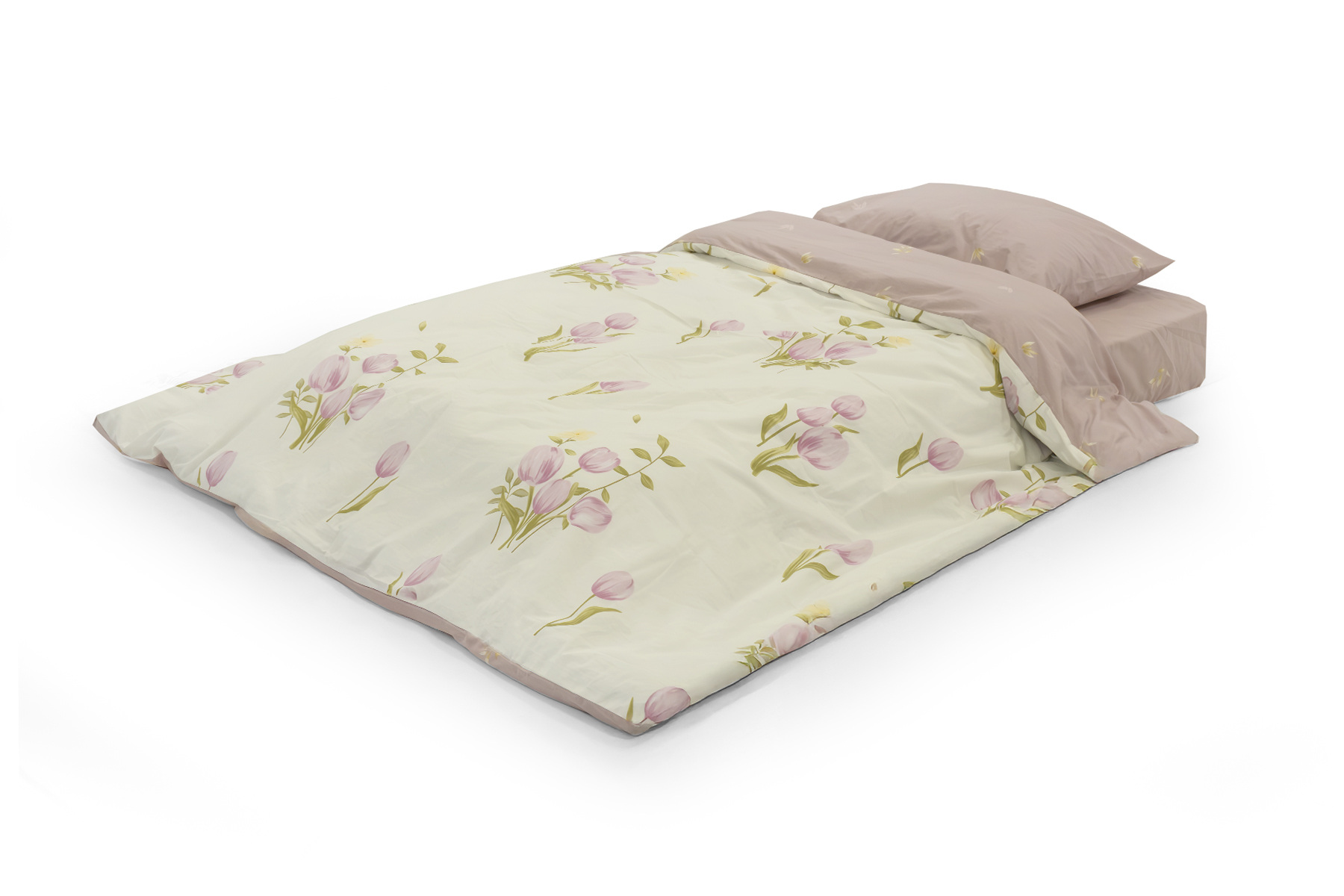 Описание Комплект постільної білизни Юнона-2 (полуторний, ранфорс, наволочки: 50х70 см 2 шт, тюльпани, пудра) IMI