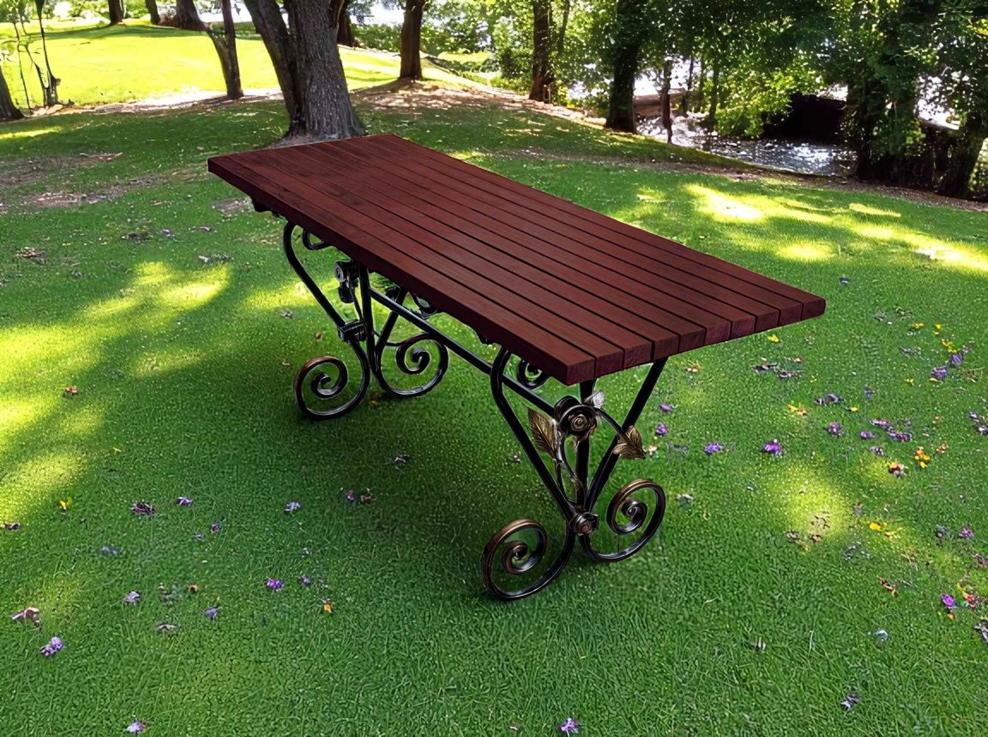 Стол кованый садовый Камелия для дачи, терассы, беседки 1500х700х800 мм, цвет Махагоний