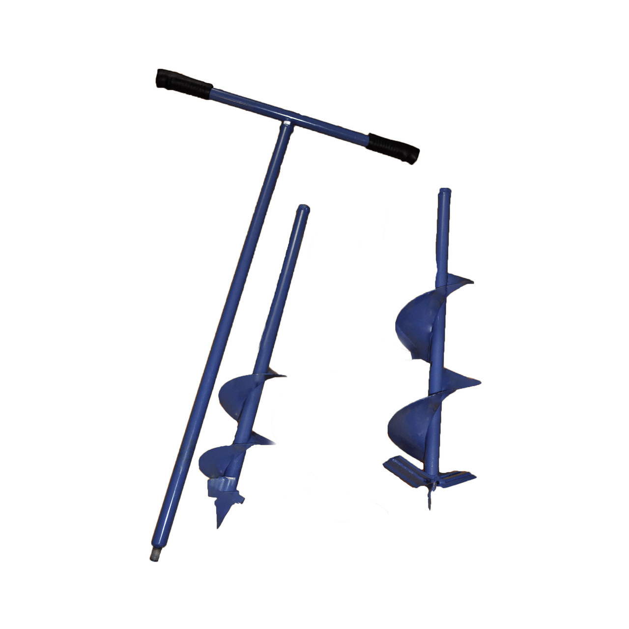 Шнековые насадки ручного земляного бура оборудованы двумя наваренными лезвиями из прочной стали. Благодаря пластине в виде шнека увеличивается объем грунта, что захватывает садовый бур, а также уменьшается осыпание его в скважину.