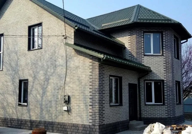 При облицовке дома панелями ROCKY (улучшенный аналог клинкерной плитки), дом приобретает роскошный внешний вид. Также обеспечивается эффективная термоизоляция.
