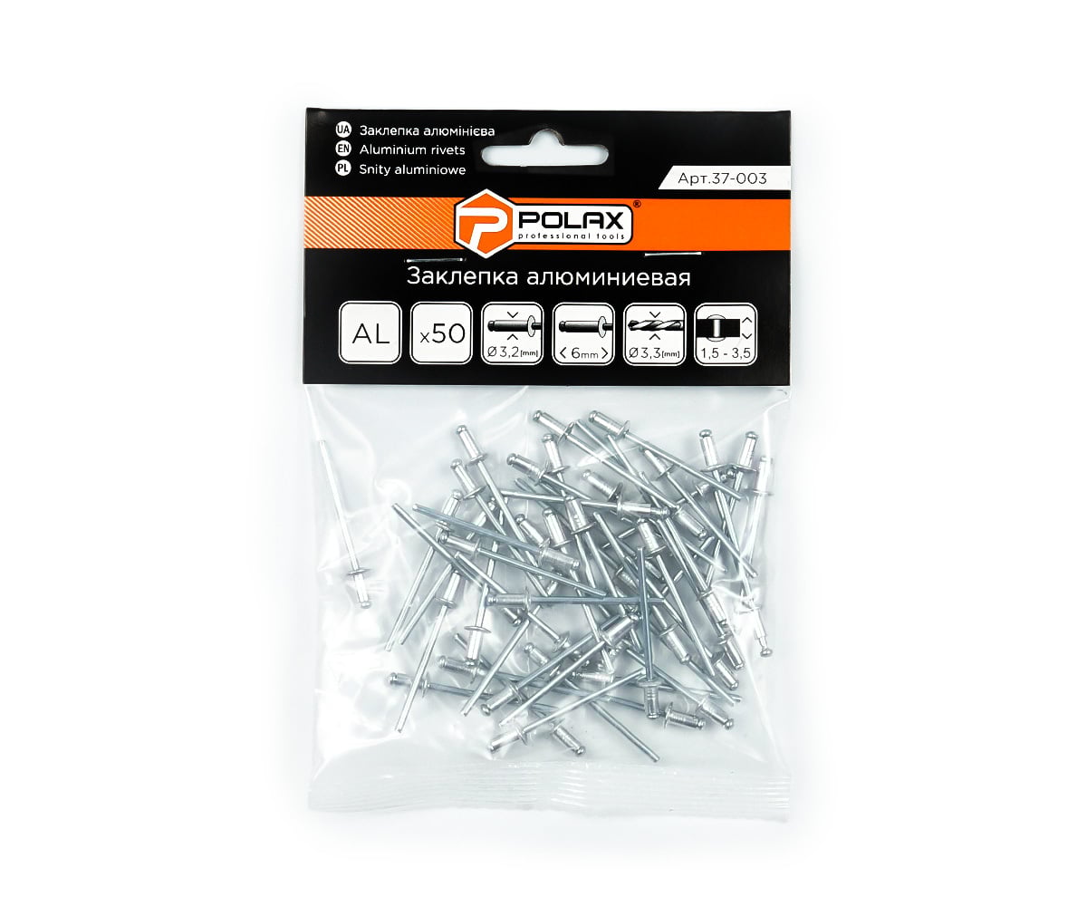 Описание Заклепки вытяжные алюминиевые 3,2 х 6 мм Polax 50 шт (37-003)
