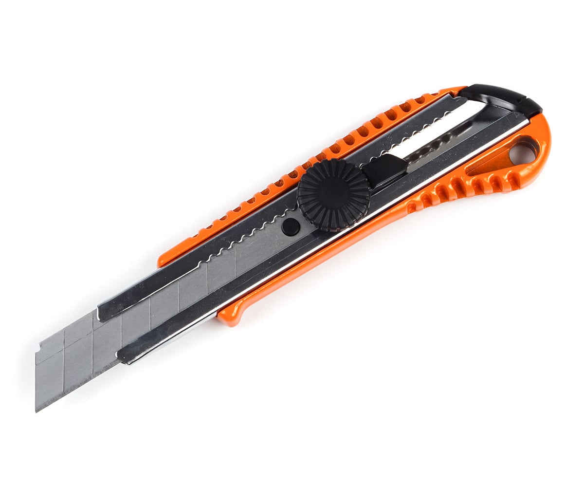 Может использоваться для работы с однослойной фанерой, ковровыми покрытиями, линолеумом, картоном, пленкой из полиуретана и др. Металлический корпус характеризуется повышенной прочностью и долговечность, что защищает инструмент от внешних повреждений и позволяет работать при максимальной нагрузке. Винтовой замок обеспечивает наиболее прочную и надежную фиксацию лезвия в неподвижном положении, обеспечивая комфорт использования и безопасность в работе. Нож удобно держать в руке.