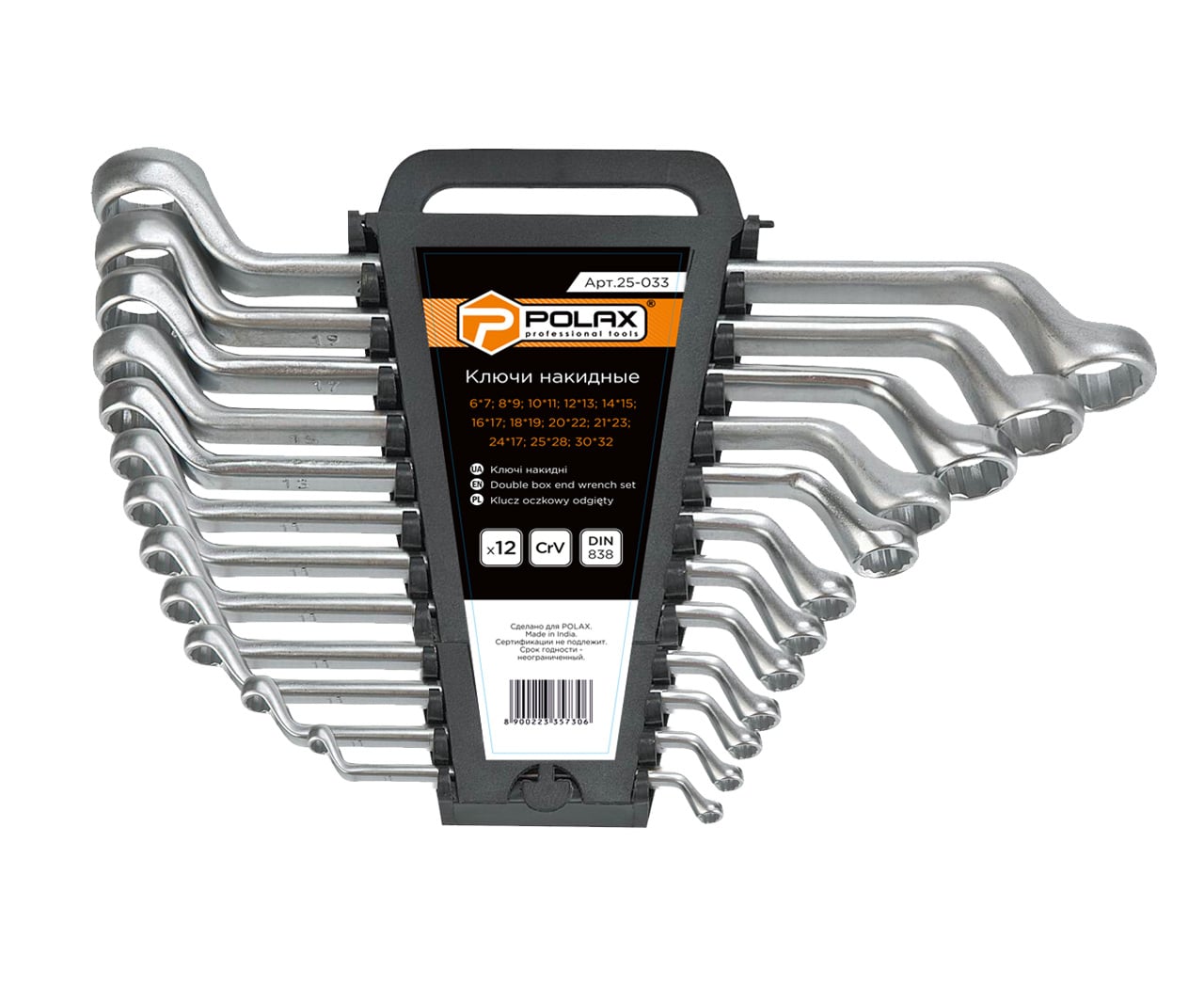 Набор ключей накидных Polax 12 шт Satin finish DIN 838 пластиковый холдер (25-033)