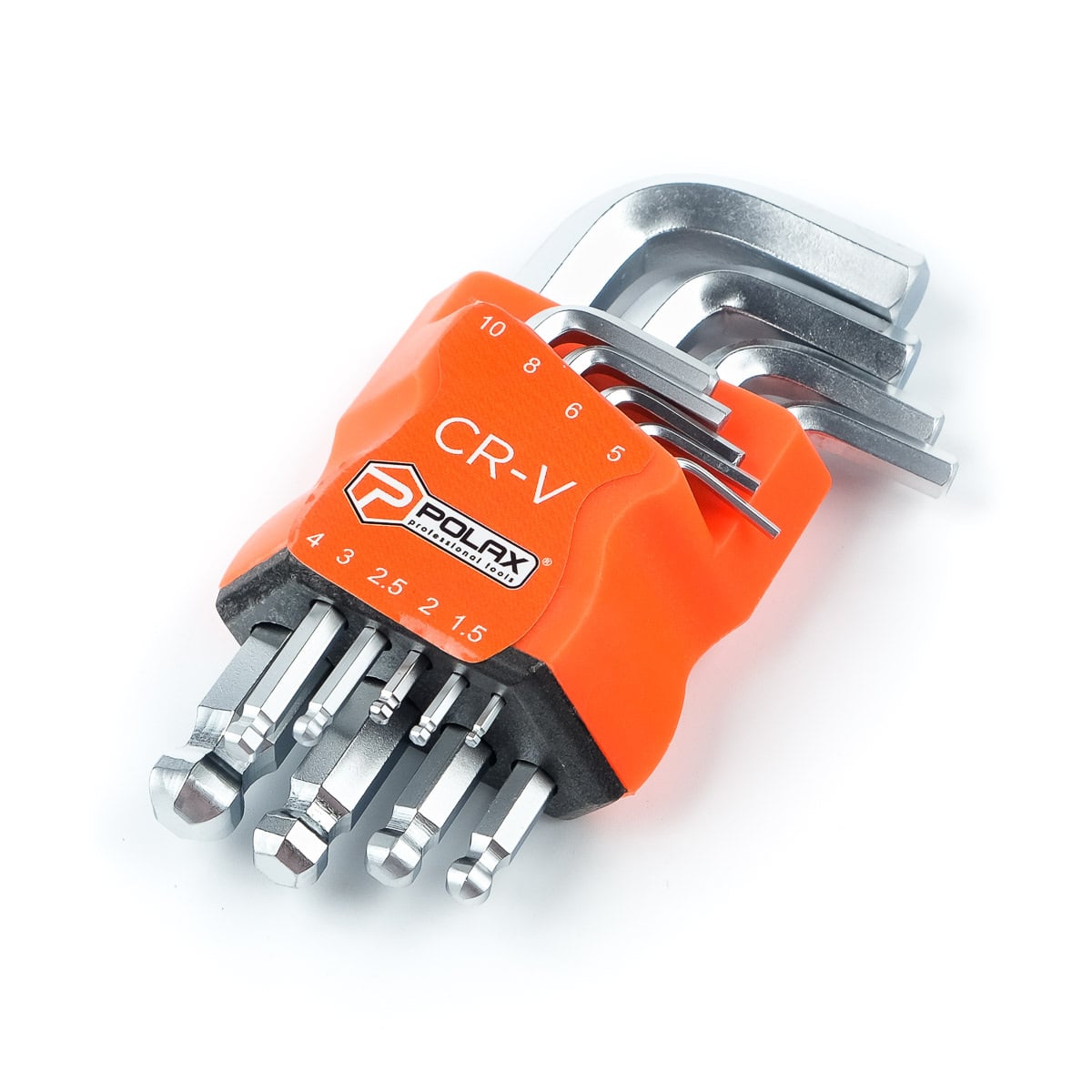 Набор шестигранных ключей Polax Г-образных с шаром 9 предметов 1.5-10 мм Cr-V (25-009)