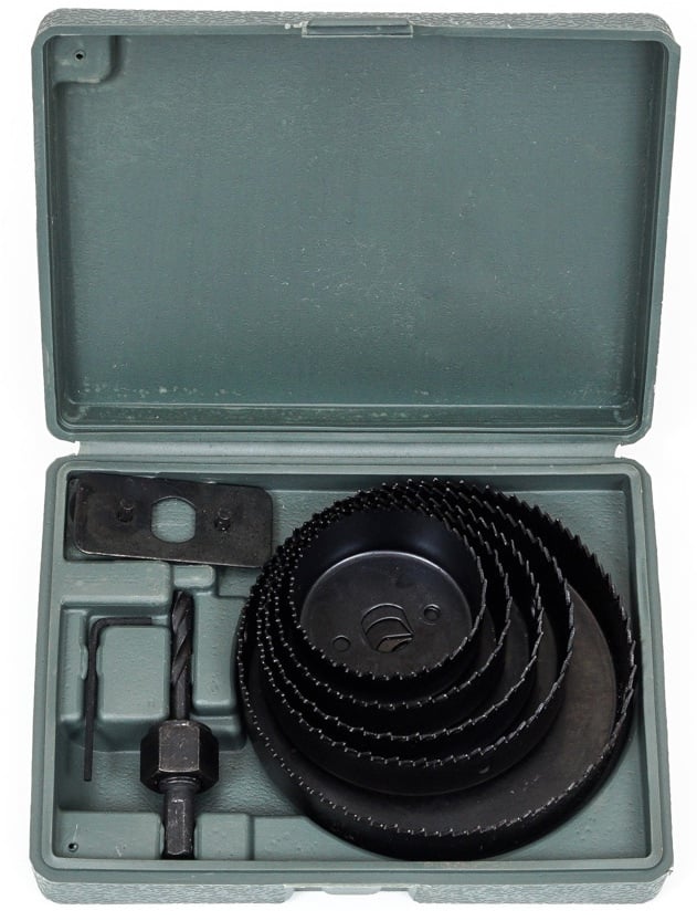 Комплект фрез по дереву и гипсокартону из 5 единиц включает сверла следующих размеров: 64 мм 76 мм 89 мм 102 мм 127 мм.