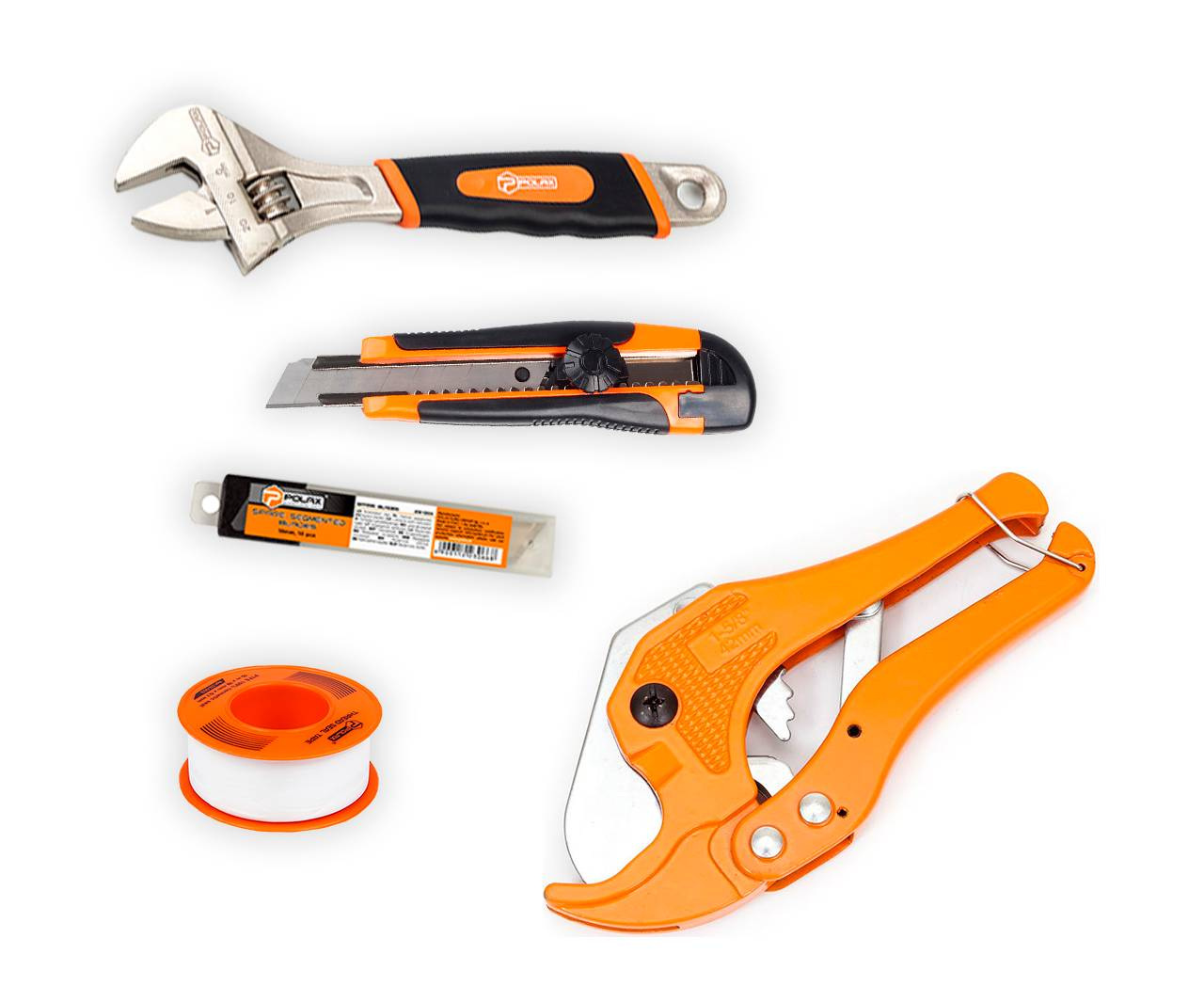 Набір трубний Стандарт Polax труборіз 3-42 мм товщина 2.8 мм тефлонова стрічка 15м та ключ розвідний 250 мм (335-14)