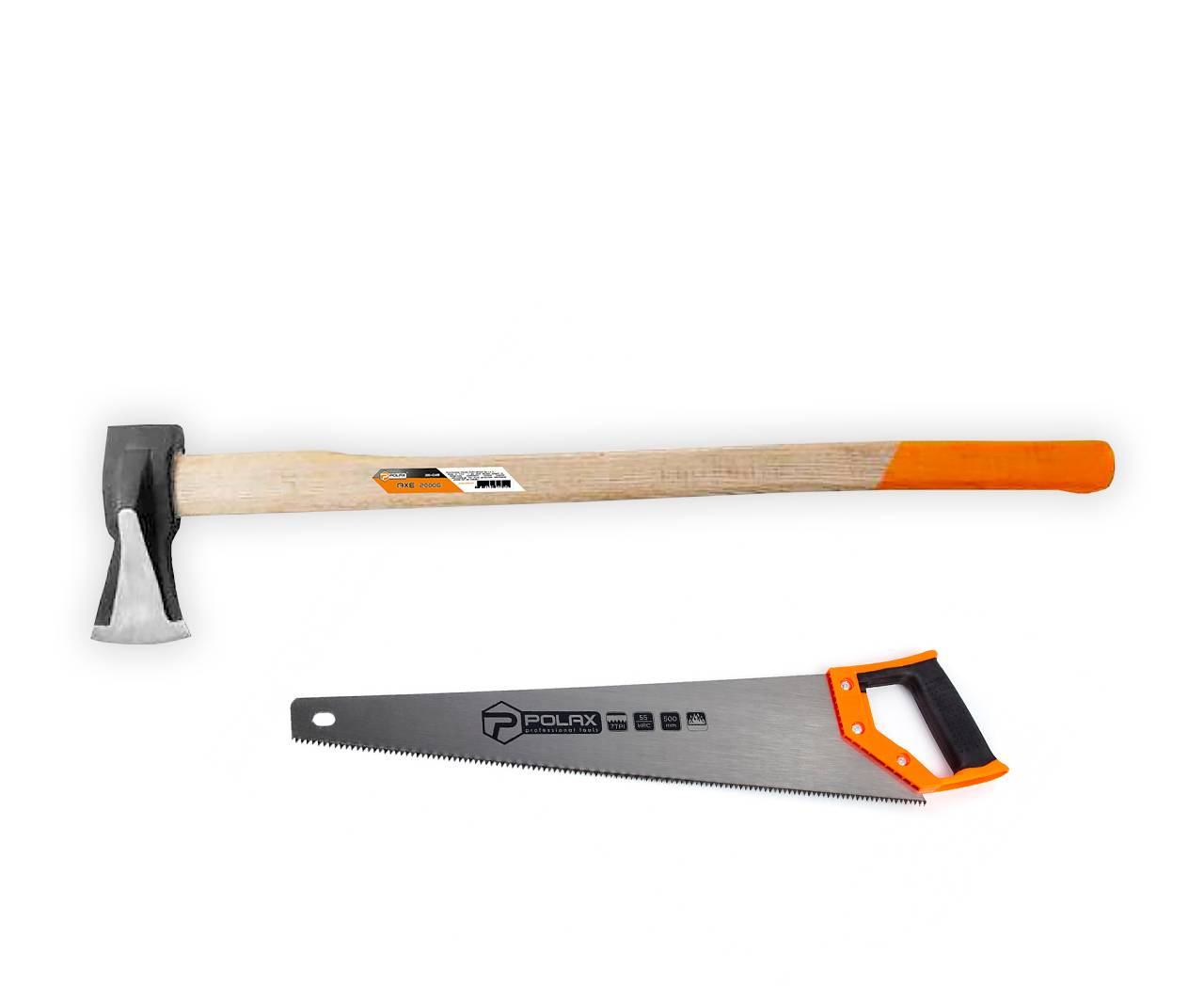 Набор Polax топор-колун 2 кг и ножовка по дереву 500 мм (335-21). Этот набор предназначен для тех, кто ценит эффективность и надежность в процессе заготовки дров на зиму. Включая топор-колун с деревянной ручкой и мощную ножовку по дереву, этот комплект обеспечивает высокую производительность и долгий срок службы инструментов.