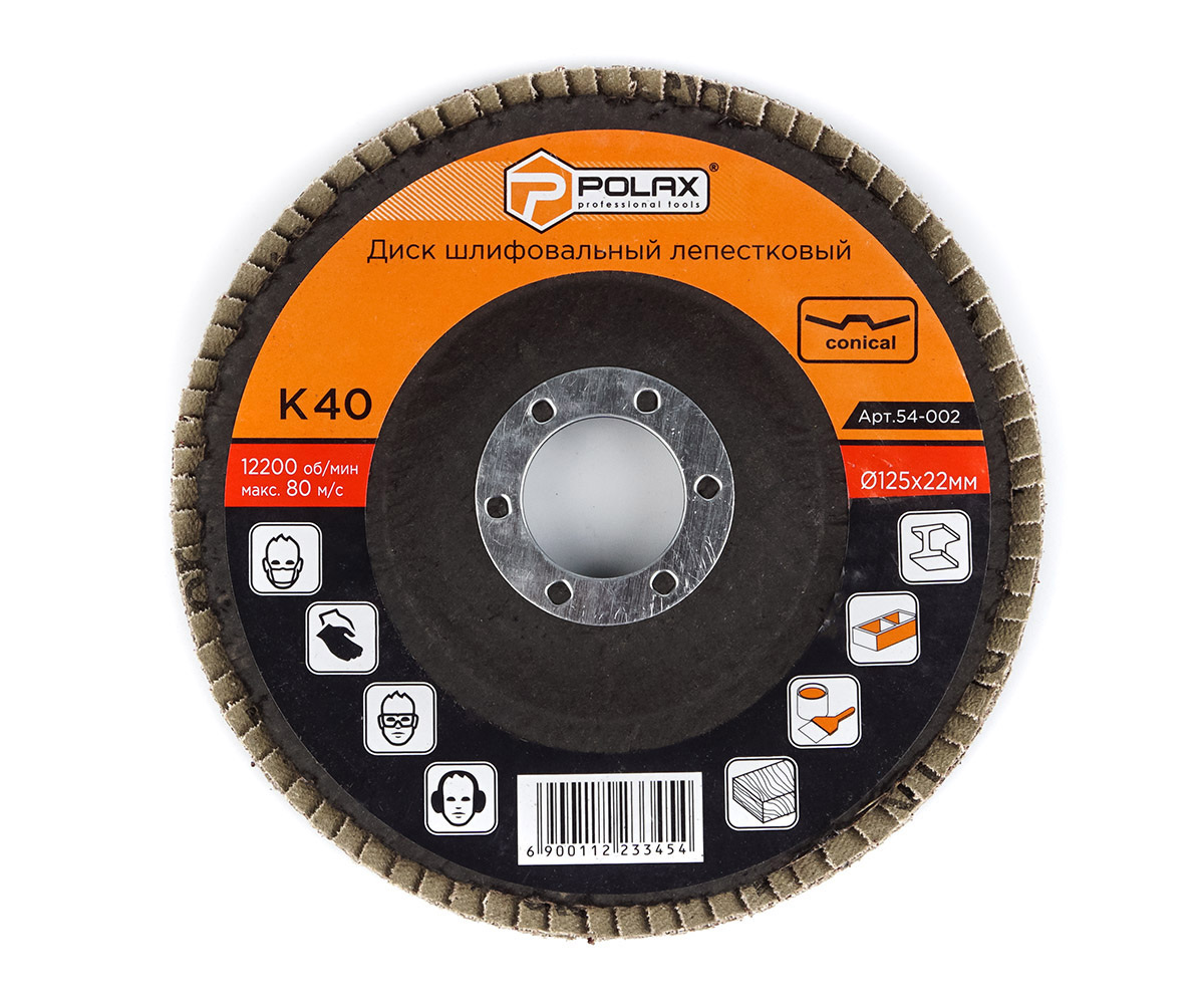 Круг (диск) Polax шлифовальный лепестковый для УШМ (болгарки) 125 * 22мм зерно K40 (54-002) Лозовая ">
