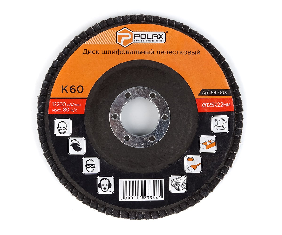 Диск шлифовальный лепестковый Polax используется в комплексе с угловой шлифовальной машиной (болгаркой) для шлифовки и полирования изделий из различных металлов, дерева и пиломатериалов, бетона, а также для снятия ржавчины, обработки кромок и сварных швов, зачистки поверхностей от старых лакокрасочных покрытий. Применение такого круга позволяет добиться отсутствия в процессе обработки прижегов, ям, зарезов и прочих дефектов. Конструктивно изделие представляет собой диск округлой формы с веерным расположением сегментов (лепестков). Их рабочая поверхность покрыта абразивным материалом с равномерной зернистостью. Лепестковая конфигурация рабочей части круга снижает его вибрацию в процессе работы, обеспечивает плавный ход и обеспечивает своевременное охлаждение в зоне проведения шлифовальных работ.