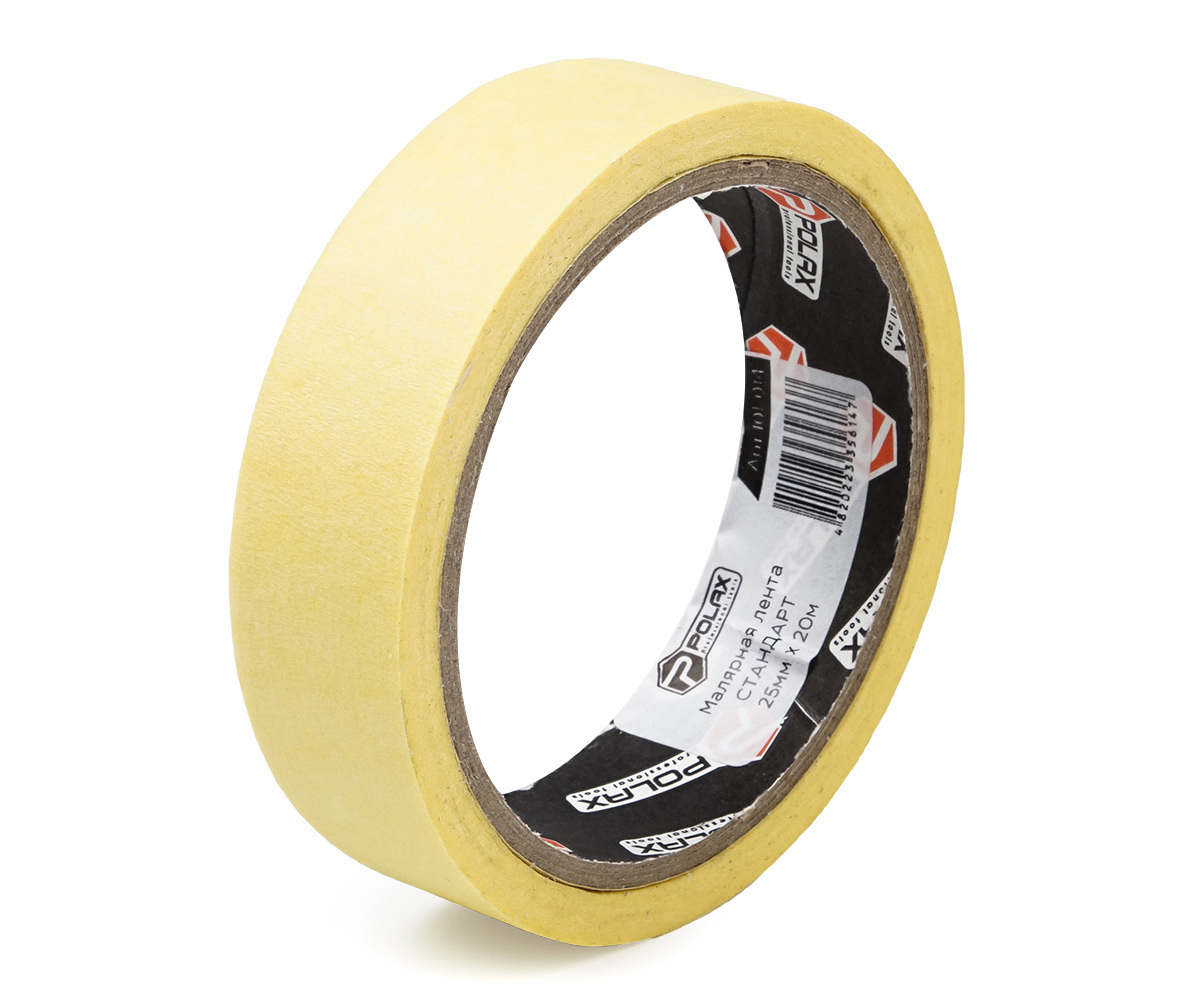 Описание Малярная клейкая лента Polax Standart yellow 25 мм х 20 м (101-014)
