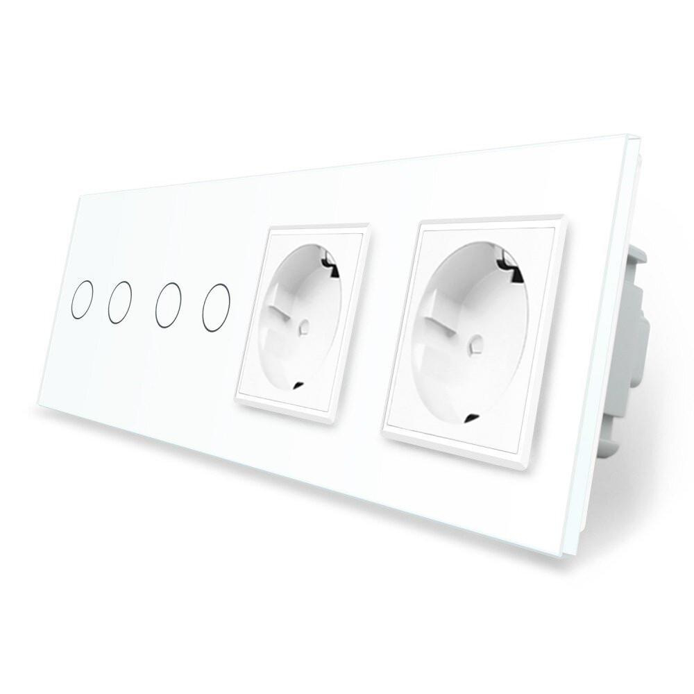 Сенсорный выключатель 4 сенсора 2 розетки Livolo белый стекло (VL-C702/C702/C7C2EU-11)
