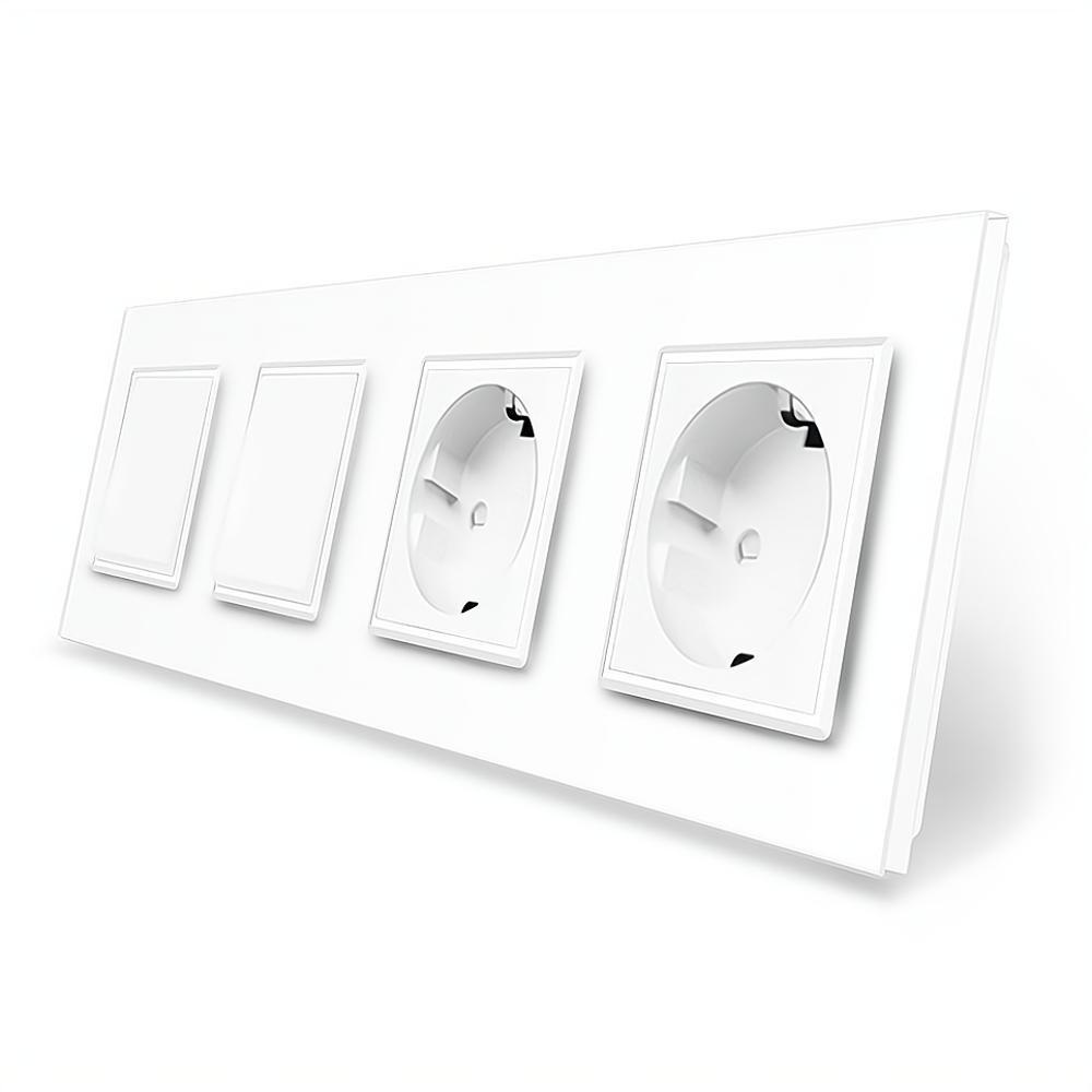 Описание Двухклавишный выключатель (1-1) с двойной розеткой Livolo белое стекло (VL-C7K1/K1/FCTC16A/FCTC16A-8WP)