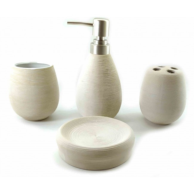 З чарівним набором аксесуарів для ванної кімнати всі предмети будуть на своїх місцях. У керамічний набір входить дозатор для рідкого мила, склянка, органайзер для зубних щіток, мильниця.