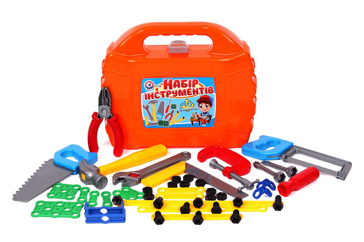 Набір пластикових інструментів, складається з 46-ти різних інструментів, таких як пила, молоток, плоскогубці, викрутка та ін. Також у наборі є гайки, болти, планки та пластини. Як упаковка йде пластикова скринька з ручкою, що дозволяє легко носити набір із собою.