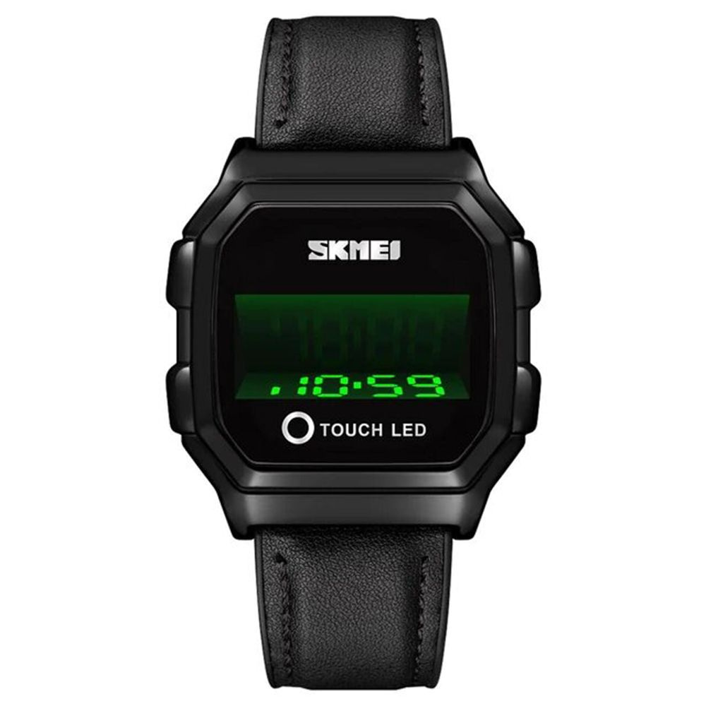 Розкішний чоловічий діловий годинник Skmei 1650 зі шкіряним ремінцем. Мають сенсорний екран. Клас водозахисту - 3 АТМ, нічне підсвічування, повний календар, будильник, секундомір.