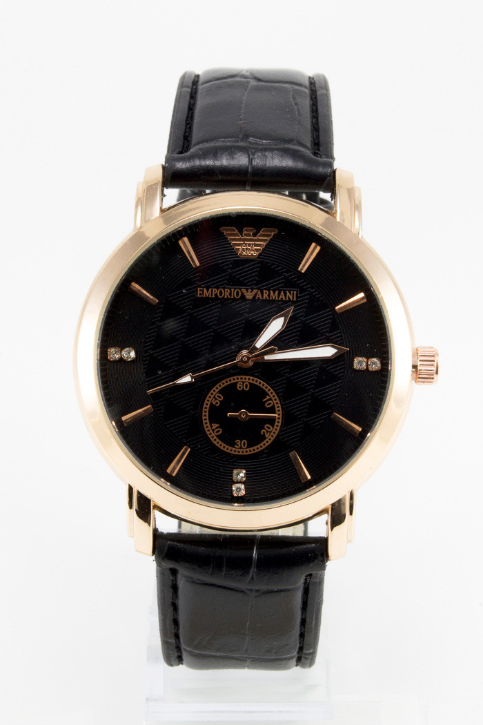 Описание Годинник чоловічий наручний Giorgio Armani Золотистий з чорним ремінцем Репліка (IBW080YB)