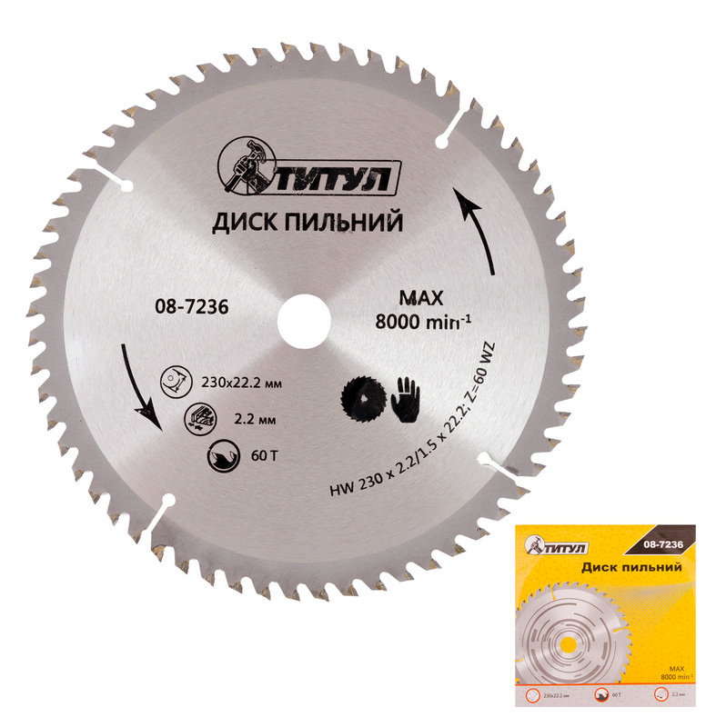 Диск пильний для дерева ТИТУЛ з твердосплавними напайками 180х22.2х20Т адаптер 22.2-20 08-7182