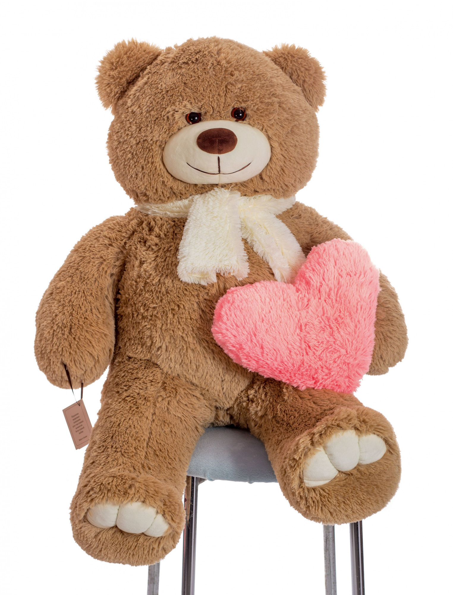 Наші плюшеві ведмедики мають правильні пропорції тіла та не збільшені за рахунок штучно подовжених ніг або інших частин тіла. Ми не відходимо від європейських стандартів вимірювання великих іграшок, тому до розрахунку зростання включено коефіцієнт обсягу. Довжиною ведмедика вважається сума двох відрізків у положенні сидячи: від голови до хвоста (це перший) та від хвоста до закінчення лап (це другий).