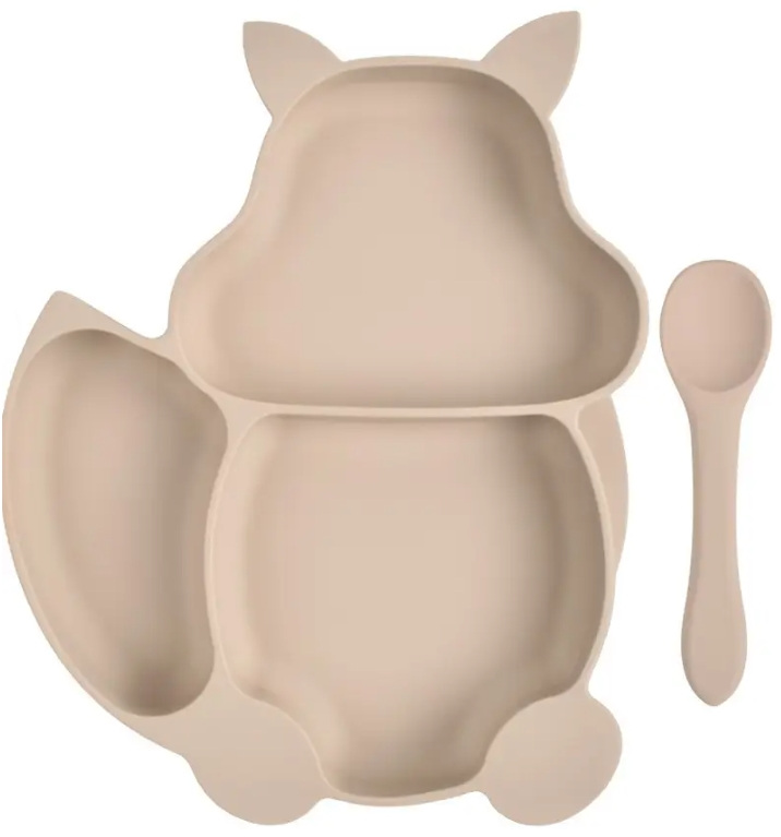 Набір силіконова трисекційна тарілка у формі білки ложка 2Life Y24 2 шт Бежевий (vol-10007)
