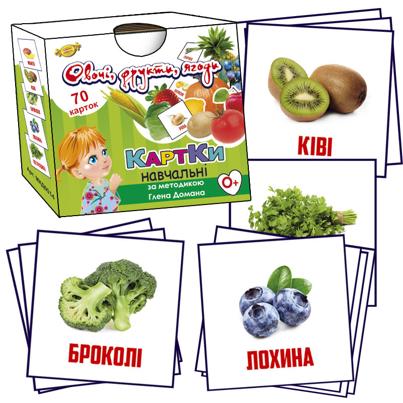 Описание Навчальні картки Мастер Глена Домана. "Овочі фрукти ягоди" MKD0014 укр.